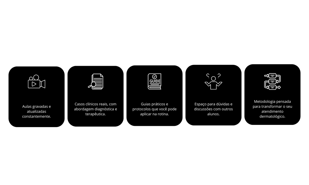 Para aprimorar a sua experiência de estudo, desenvolvemos um portal para você assistir aos nossos cursos de maneira confortável, sem as distrações das redes sociais. Uma verdadeira imersão na Dermatologia.