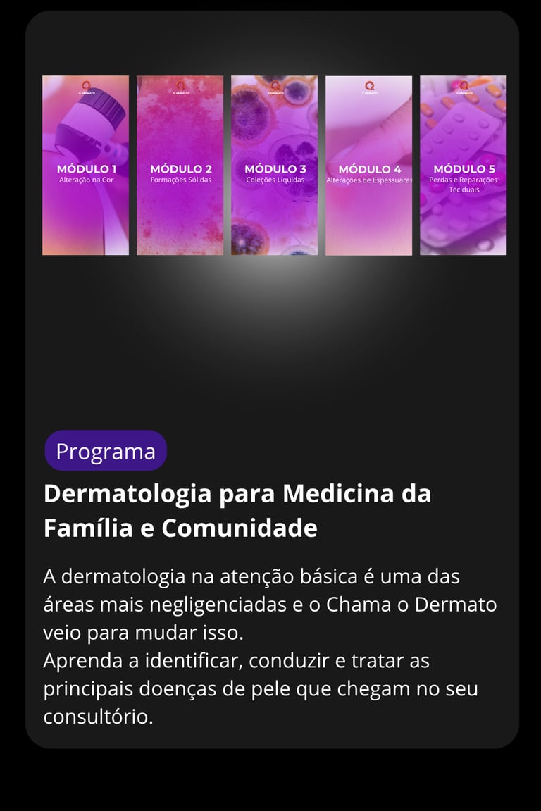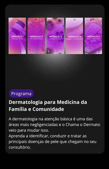 O Chama o Dermato não é só uma plataforma de cursos — é um ambiente de aprendizado contínuo, criado por quem vive a dermatologia na prática e entende as dúvidas de quem está começando ou quer se atualizar.