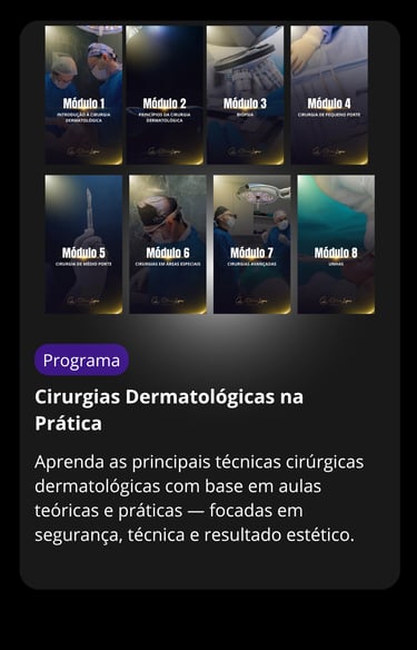 Uma imersão que forma cirurgiões dermatológicos mais precisos, seguros e completos.